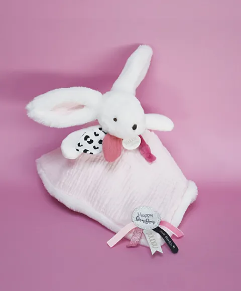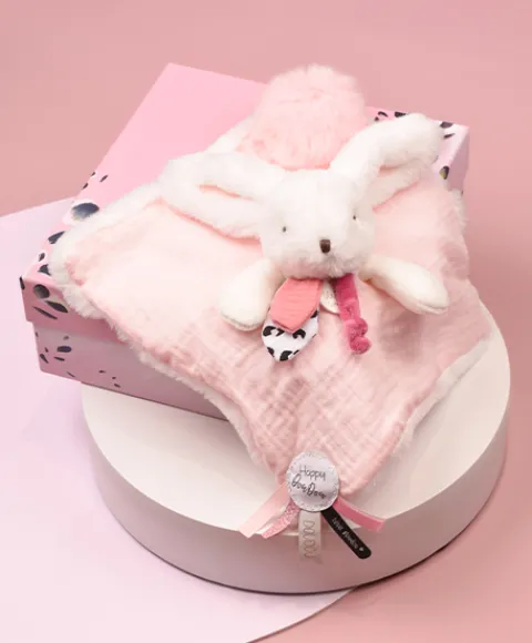 Le doudou plat avec coffret lapin rose pastel « Happy Blush » est un adorable cadeau pour les tout-petits ! Doux et coloré, ce petit lapin deviendra vite son compagnon préféré. Stylé, tendance « mix and match », avec son pompon couleur bouton de rose, garni de touches de lange en camaïeu de blush, ainsi que de passementeries fantaisies et rubans tissés savamment coordonnés, ce lapin happy pétille de fraicheur. Blotti dans une superbe boîte cadeau aux graphismes évoquant à la fois la modernité et le luxe, comme dans un écrin magique, ce doudou surprise se dévoile délicatement.
