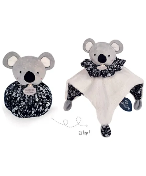 Très pratique pour la promenade ou à la crèche ( Doudou est bien protégé dans sa bulle de tissu ), ainsi qu’ à la maison pour s’initier à jouer à la balle, il sera aussi, en toutes circonstances, rassurant et apaisant pour bébé. Avec son adorable frimousse de koala, son imprimé d’inspiration végétal et ses mélanges de matières douces, ce DOUDOU BOULE saura séduire avec grande tendresse petits et grands. Un cadeau idéal dès la naissance.