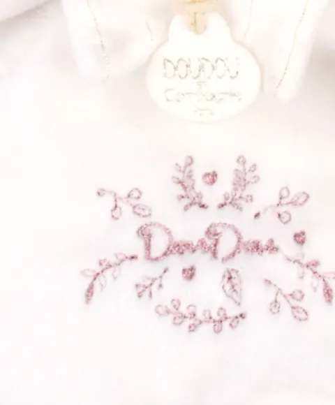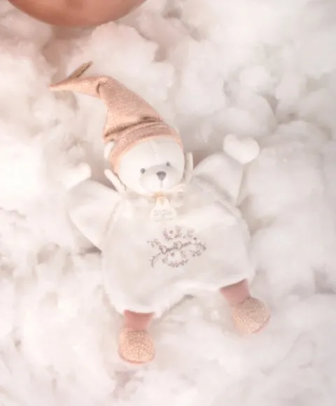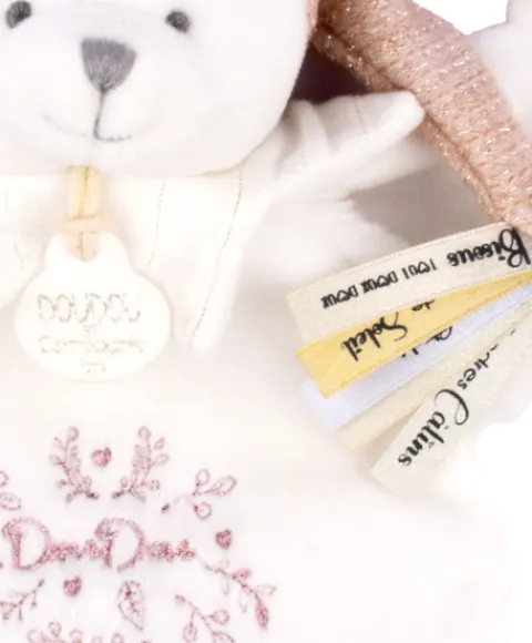 Plongez bébé dans un univers de douceur et de raffinement avec ce superbe doudou plat rose de Doudou et Compagnie. Son tweed rose, associé à de fines broderies, confère à cet ourson au bonnet de nuit une élégance intemporelle.