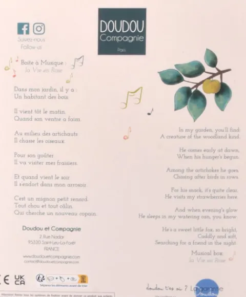 Doudou et Compagnie DOUDOU plat Renard Romarin – 27 cm> Doudou Plat|Hochets Et Pantins D’Activités