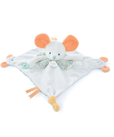 Découvrez le Doudou Marionnette à doigts souris ! Rigolo et futé, tout blanc agrémenté d’une colerette fleurie, ce Doudou remplira à merveille son rôle de protecteur toujours à l’écoute des besoins de son petit propriétaire. Aussi, grâce à ses deux marionnettes à doigts, les plus grands pourront les animer pour divertir les enfants voire même leur permettre d’exprimer leurs sentiments, leurs émotions. Grâce à son numéro unique, Doudou perdu est vite retrouvé ! Enregistrez votre Doudou et découvrez toutes les garanties sur le site doudouetcompagnie.com