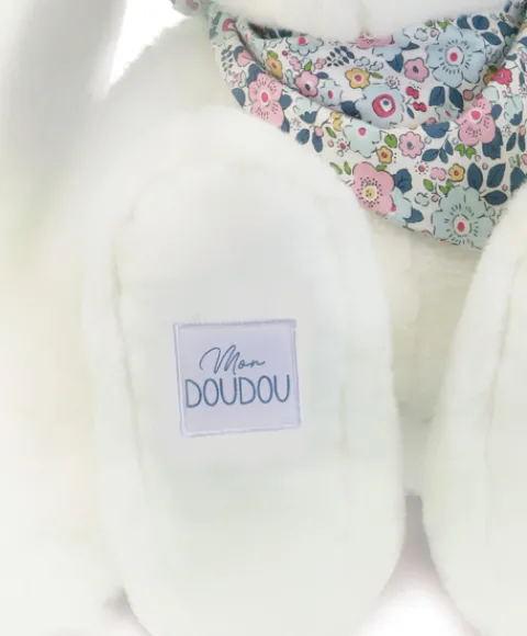Découvrez la peluche Lapin Fleurette Blanc 50 cm, une peluche doudou ultra-douce qui enveloppe bébé dans un cocon de tendresse. Son pelage moelleux, sa grande taille rassurante et son bandana fleuri Doudou et Compagnie en font un compagnon idéal pour réconforter et apaiser bébé dès la naissance.