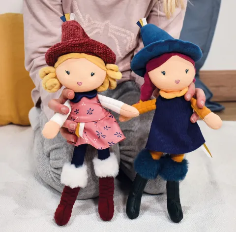 Pim, Pam, Poum, 3 poupées qui se déguisent en gentilles sorcières, prêtes à suivre tous les enfants dans leurs bulles imaginaires. Petites bottines, chapeaux pointus et petites robes, chacune a son style et attend avec impatience de découvrir ses dons enchanteurs.