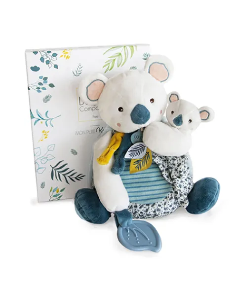 La peluche d’activités Yoca le koala et son bébé développe les sens et la curiosité de bébé tout en l’amusant, Avec son adorable frimousse, ses subtiles harmonies de couleurs très tendance, ses mélanges de matières très douces et ses touches de langes aux motifs végétaux, C’est un très joli cadeau pour Noël ou pour célébrer une naissance, Le koala et son bébé sont craquants avec leurs adorables frimousses, ils sauront séduire avec grande tendresse petits et grands.