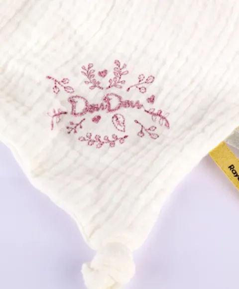 - Le doudou mouchoir brodé « Doudou » est orné d’étiquettes en satin avec des messages affectueux pour des câlins encore plus tendres.